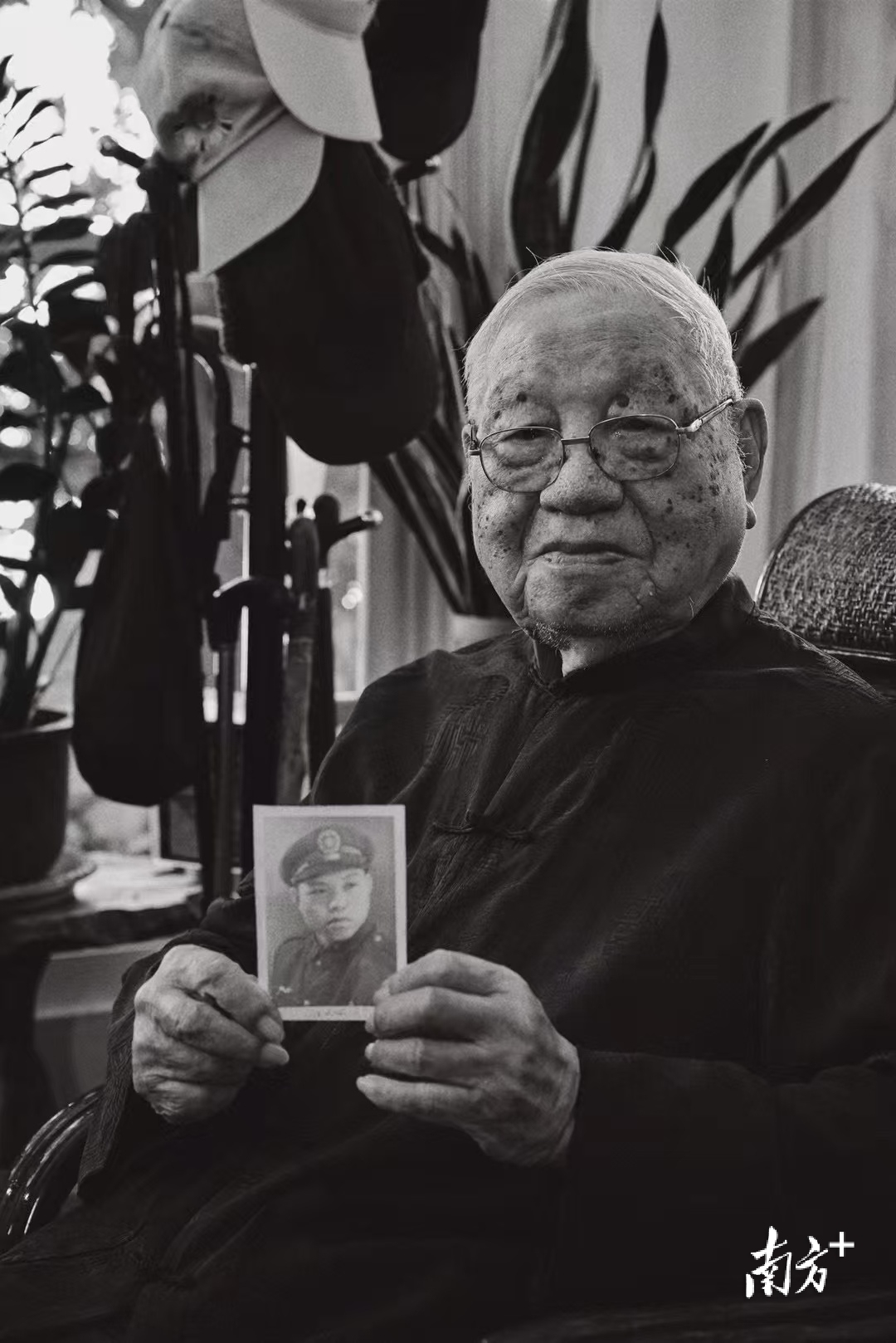 曾奇才老人展示年轻时的照片。 受访者供图